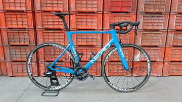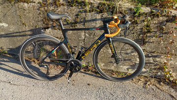 Fahrrad aus Carbonfaser mit Scheibenbremsen und versteckter Kabelführung.